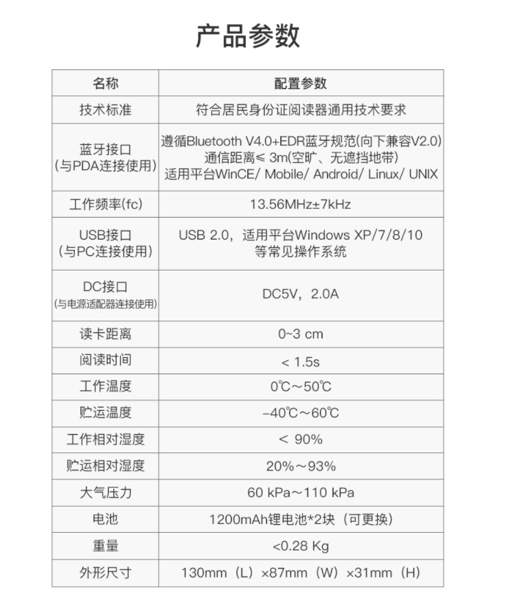 藍牙身份證閱讀器