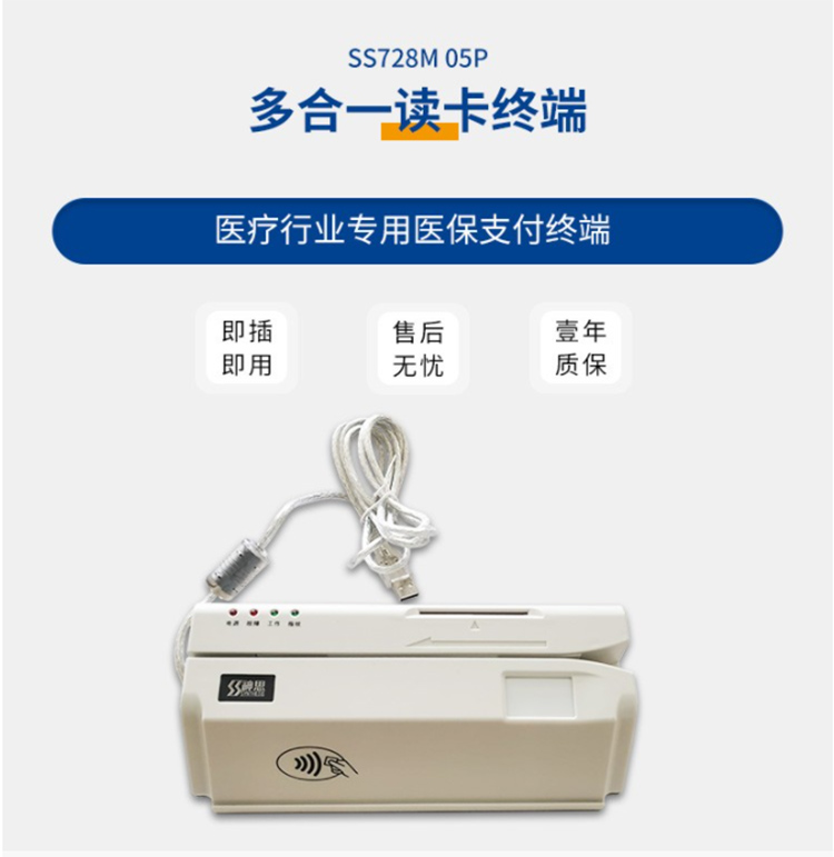(*由于產(chǎn)品升級(jí)或其他原因,神思醫(yī)保卡讀卡器SS728-M05P產(chǎn)品實(shí)際參數(shù)有可能變更,以實(shí)際產(chǎn)品為準(zhǔn)。本文中的所有陳述、信息和建議也不構(gòu)成任何明示或暗示的擔(dān)保)